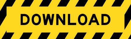 Yellow and black color with line striped label banner with word download