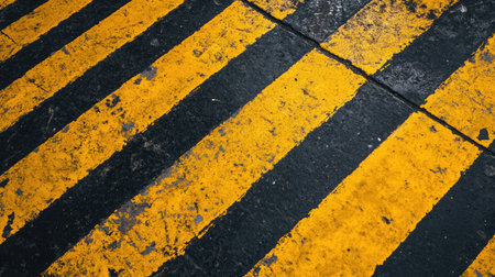 This image features a striking black and yellow hazard stripe pattern on a textured surface, ideal for safety warnings and industrial signage in various settings.