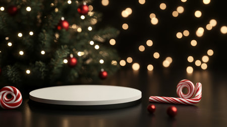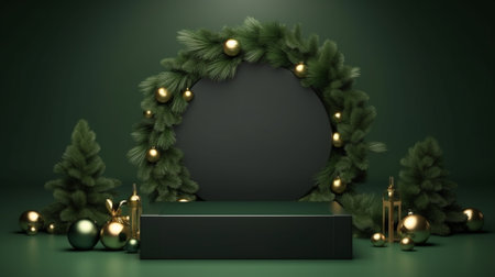 3d luxury podium christmas decoration and space for your luxury product. Christmas background concept. Generative AI.