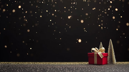 Soft cinematic lighting reveals glimmering gold elements on a dark matte holiday background.