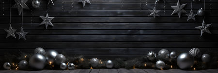 A festive background decorated with silver holiday ornaments, AI-generated.