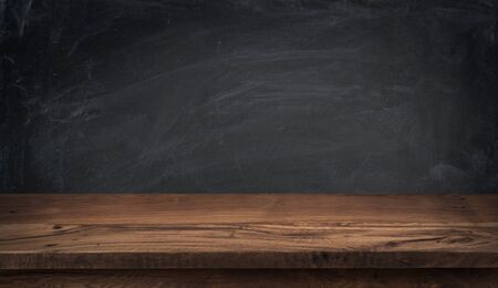 clean blackboard on the wooden table background