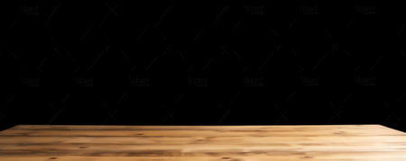 Empty wooden deck table over black wall background. Mock up template. Copy space