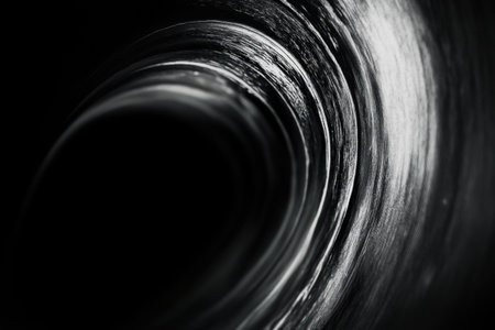A close up view into a dark tunnel revealing textured walls creating a mysterious and infinite appearance.