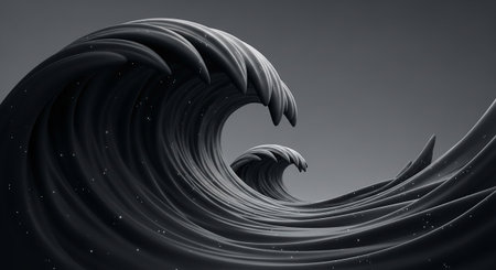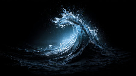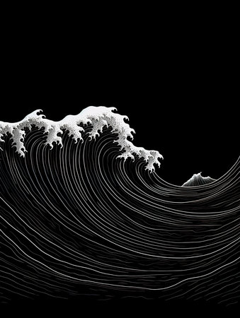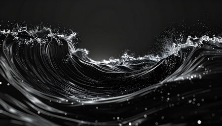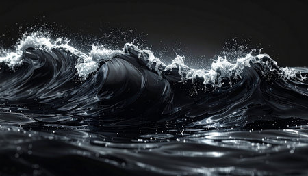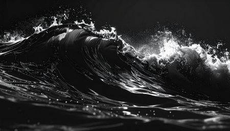 monochrome wave crashing with energy, showcasing nature's raw power and elegance in serene darkness