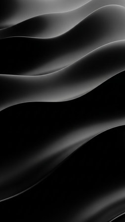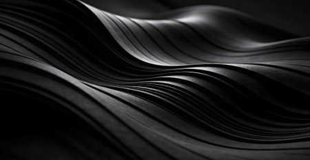 Smooth black waves create a striking abstract texture in a dark setting