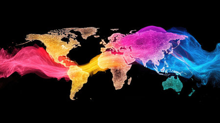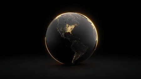 Detailed Sphere of Earth on Dark Background with Visible Continents Highlighted in Bright Colors, Representing Global Awareness and Environmental Concerns