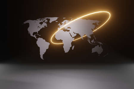An illuminated globe is centered against a dark background, suggesting a global perspective. The image features a stylized representation of Earth with glowing highlights. The overall aesthetic is clean and modern, possibly suitable for design, editorial, or commercial purposes.