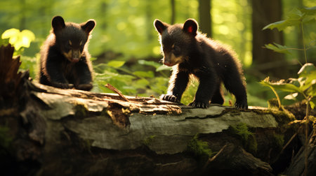 Nature's Bond: Black Bear Cubs Exploring Wilderness