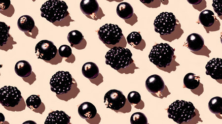 A visually appealing arrangement of fresh blackberries and currants on a soft beige background. This image captures the vibrant colors and textures of the fruit, perfect for culinary projects or design applications.