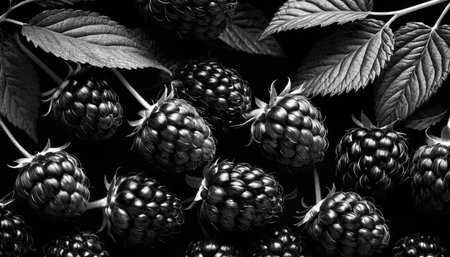 Ripe blackberries glisten in soft light, inviting indulgence.