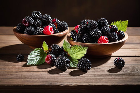 Black raspberries and blackberries are rich in vitamins. Juicy and ripe berries are ideal for snacking or adding to recipes. A great option for vegetarians looking for a tasty and nutritious snack.