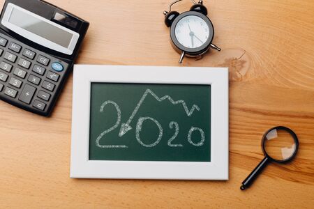 Crisis management of the global economy and stock markets, the concept of the financial crisis. graphics on chalk board