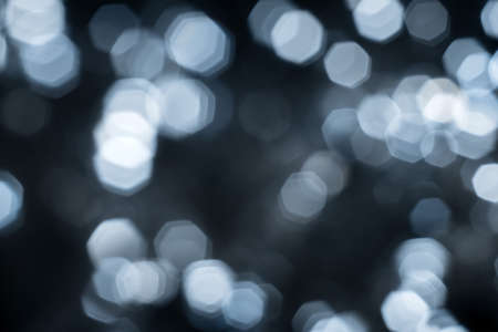 Blurred lights dark gray blue background. Abstract bokeh with soft light. Shiny festive christmas texture