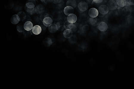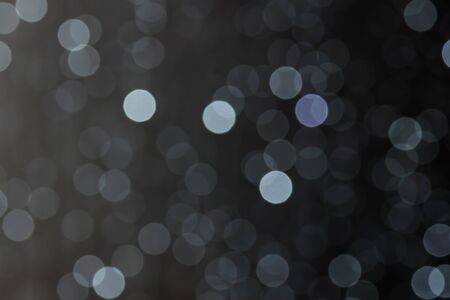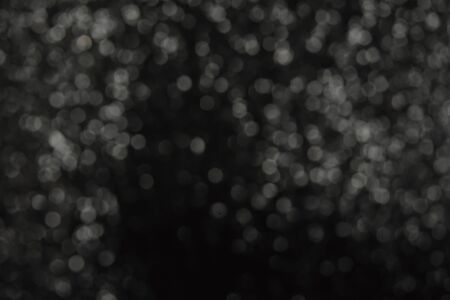 White gray blurred abstract bokeh lights on black background. Snowy shiny glitter sparkle stars for celebrate
