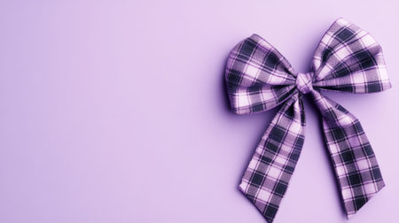 A beautiful purple plaid bow sits elegantly on a soft background, perfect for festive gift decorating, crafting projects, or capturing a cheerful moment.