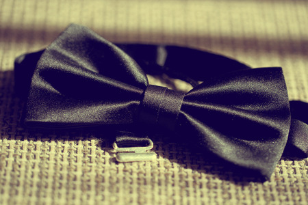 Close up of bow tie on wooden table