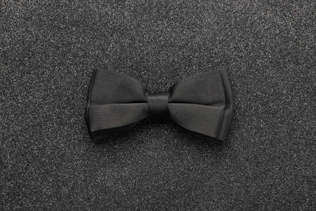Black bow tie with golden glitter on black background. Close up.