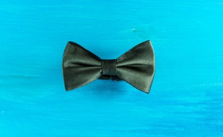 Black bow tie on turquoise wooden background