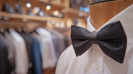 Bow tie accessory used for men's clothing. an illustration of buying placed on the tablecloths