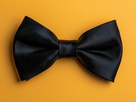 A striking black bow tie placed on a bright yellow background, perfect for showcasing elegance and style in formal attire and fashion photography.