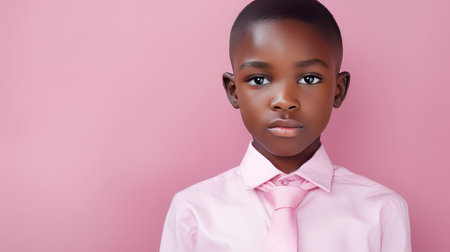 An African American Juvenile Boy, Isolated On A Pink Background With Copy Space. Generative AI