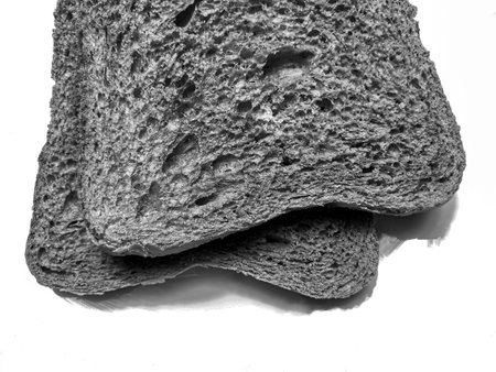 The malt bread toasts that have just been extracted from the toaster are hot. on white background, close-up, macro, visible texture