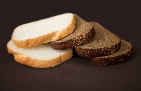 Bread. Homemade whole grain bread on a dark napkin on a dark background copy space.