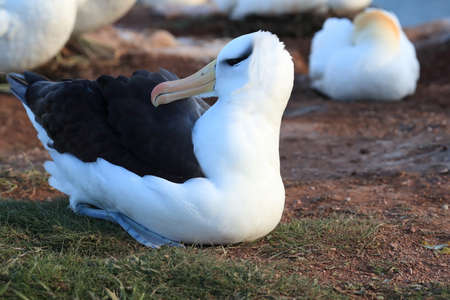 Black-browed albatross lying on nest in colony
