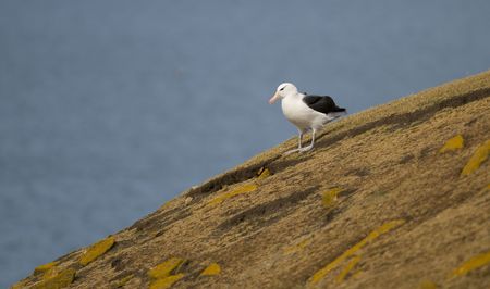 A Black-browed Albatross surveying the seas from a grassy hillside - Falklands.