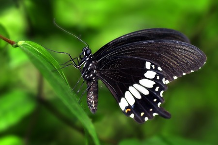 Beautiful butterfly Beautiful butterfly Great Mormon, Papilio memnon in tropical forest in tropical forest sitting on green leaves. Tropical nature of rain forest, butterfly insect macro photography.