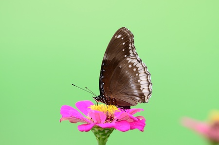 Common Mormon butterfly on green background