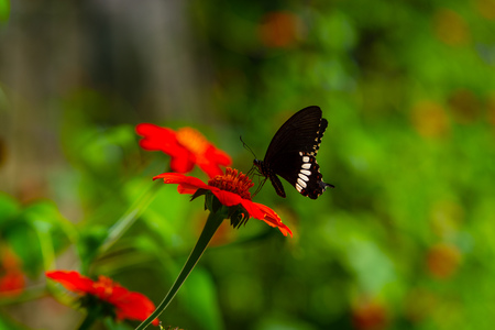 butterfly on a flower in the garden, note shallow depth of field