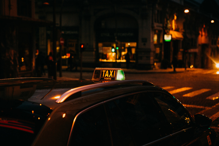 Reims France November 16, 2019 View of a taxi rolling in the city of Reims in France in the morning
