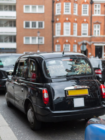 LONDON, UK – APRIL 16, 2014: Motorised hackney cabs in the UK, traditionally all black in London and most major cities, are traditionally known as black cabs