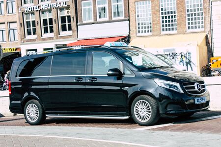 Amsterdam Netherlands April 22, 2019 View of a classic Dutch taxi in the streets of Amsterdam in the afternoon