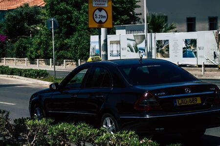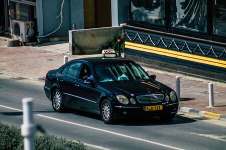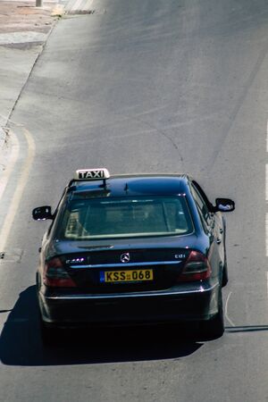 Limassol Cyprus May 21, 2020 View of a traditional Cypriot taxi rolling in the streets of Limassol in Cyprus island
