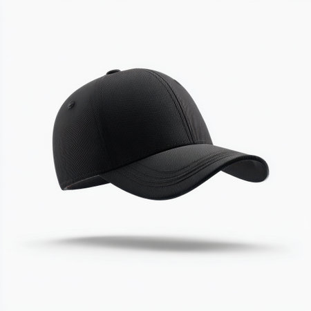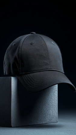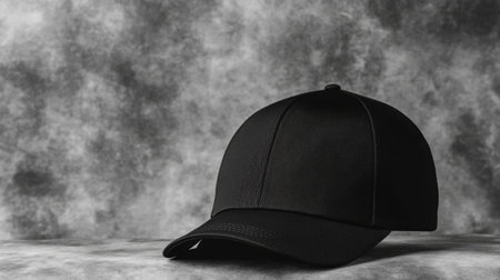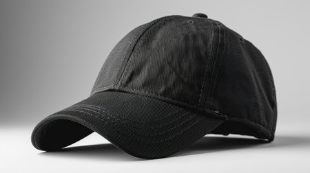 Black baseball cap mockup on a grey background.