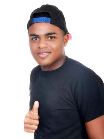 Portrait of man in black ball cap on white background
