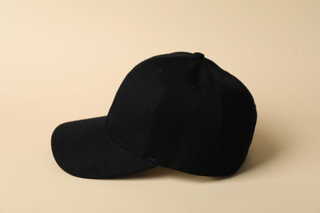 One black baseball hat on beige background