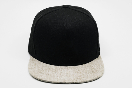 Black cap with light gray flap isolated on white. Straight flap cap with no brand.