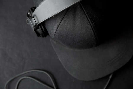 Black headphones with a cap on a dark background