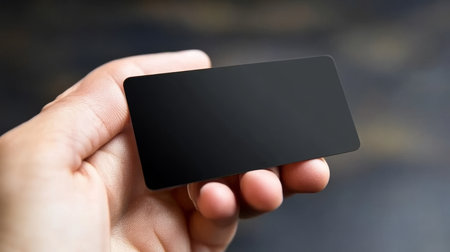 A hand presents a sleek, black gift card, creating an ideal mock up with ample empty space for personalized text or branding.