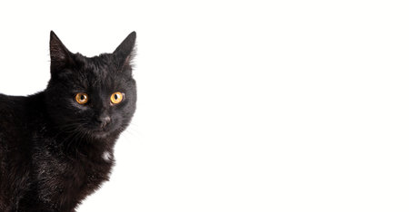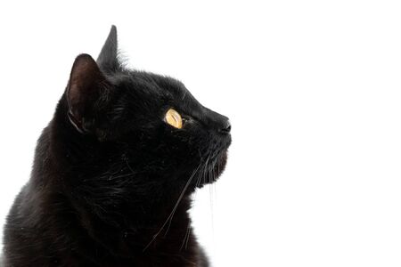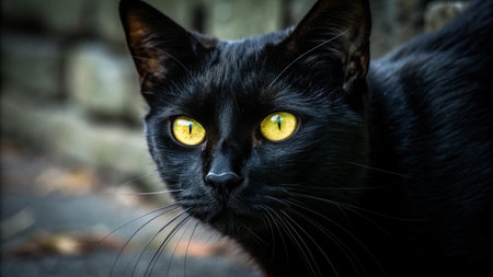 Portrait of a black cat with yellow eyes. Shallow depth of field.