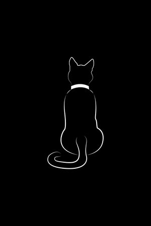 Digital Line drawing of a cat sitting on a dark background - vector illustration