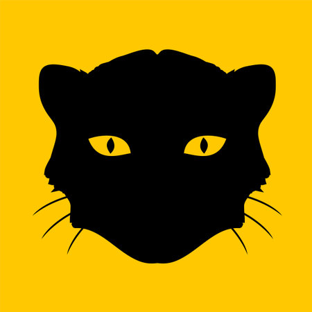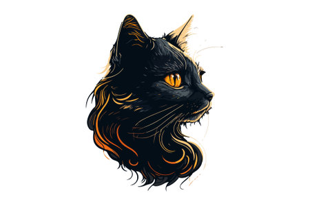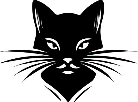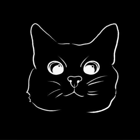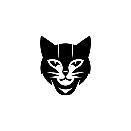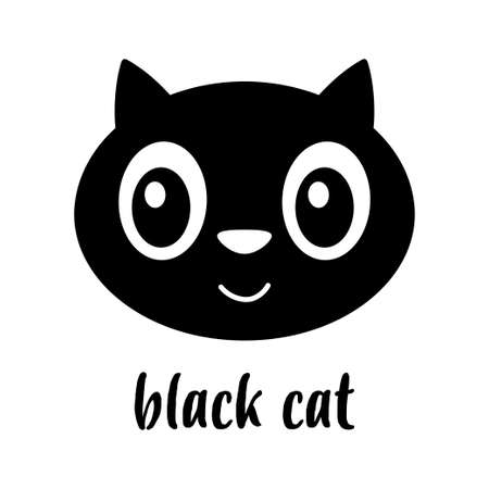 Black domestic cat. head animal. home pet. abstract silhouette. Design logo, sign. Vector art illustration isolated on white background