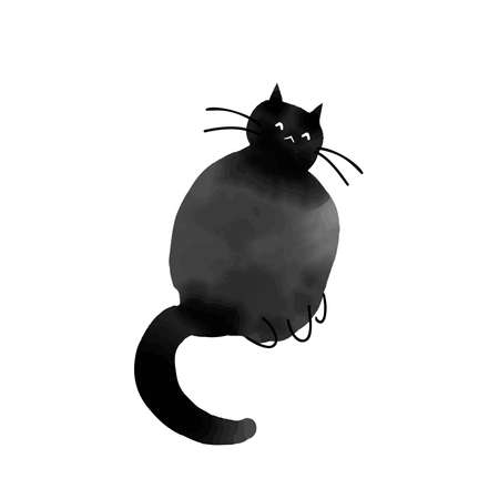 Black cat silhouette isolated on white background. Vector illustration. Eps 10.