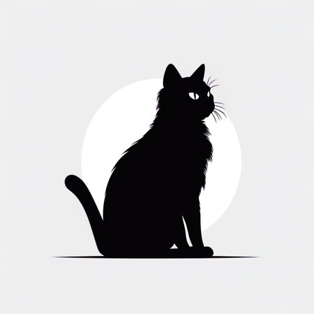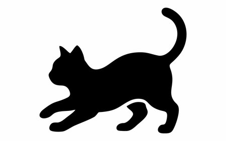 Vector illustration of a cat in black silhouette against a clean white background, capturing graceful forms.