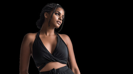 Fashion model posing with braided hair and stylish outfit on transparent background