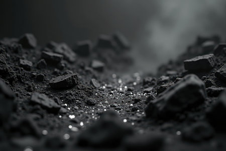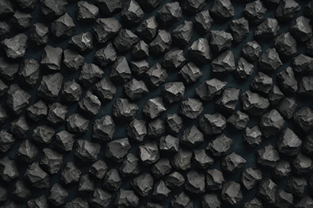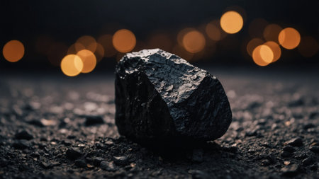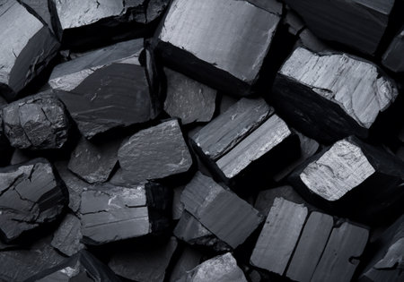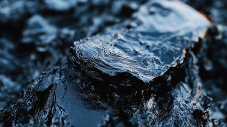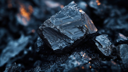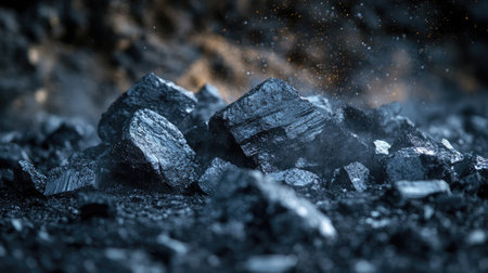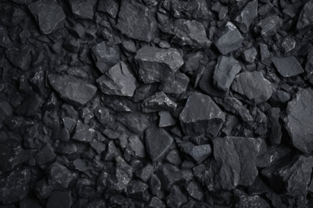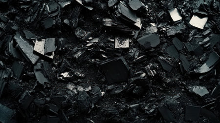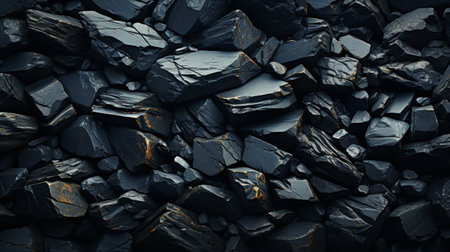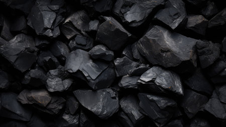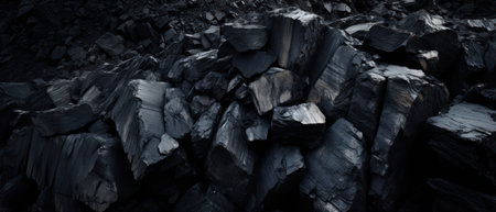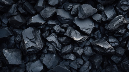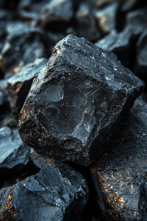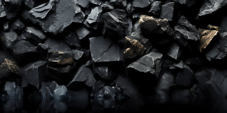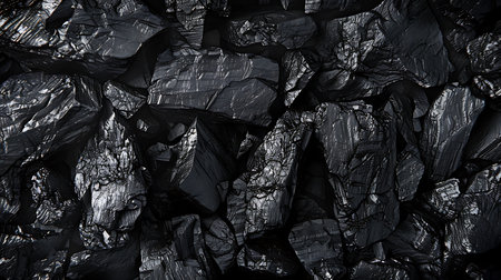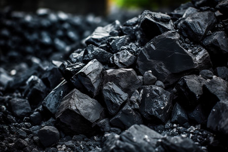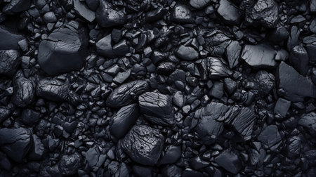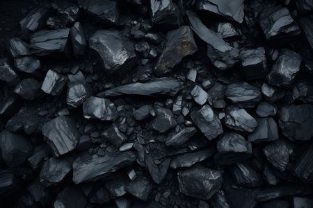 Close-up of a dark, heavy heap of varied coal, highlighting intricate details and rough edges. AI generative.